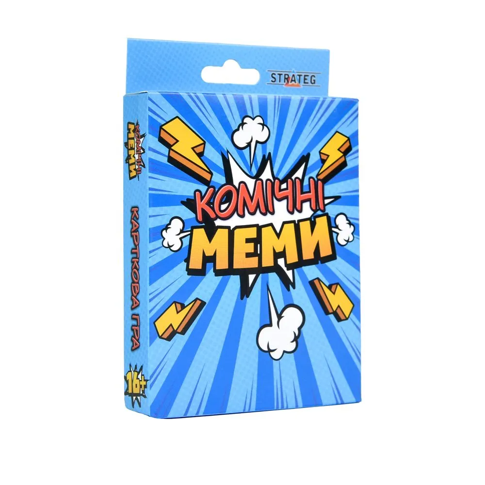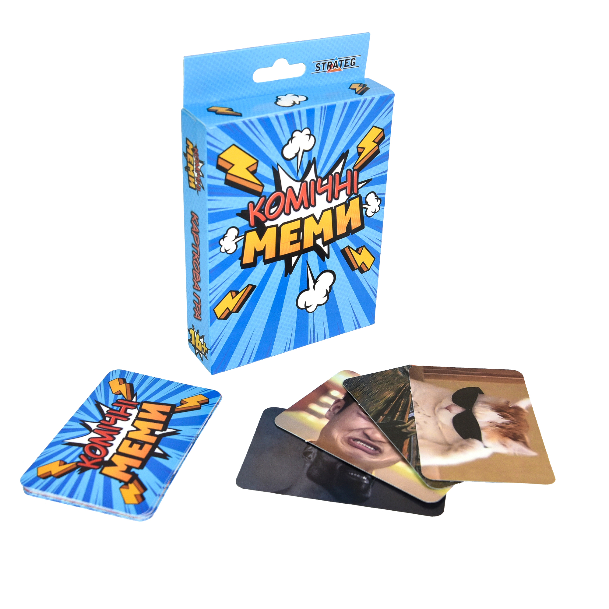 «Комічні меми»– це ще одна гра від Strateg, в якій ми зібрали свіжі та актуальні меми 2022 року в форматі карток і запитань. Задача гравців підбирати картинки до текстів так, щоб це було настільки життєво, що аж смішно.