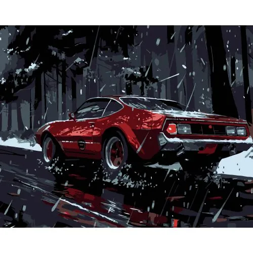 Картина за номерами Strateg ПРЕМІУМ Червона машина на чорному фоні розміром 40х50 см (AH1196-11)