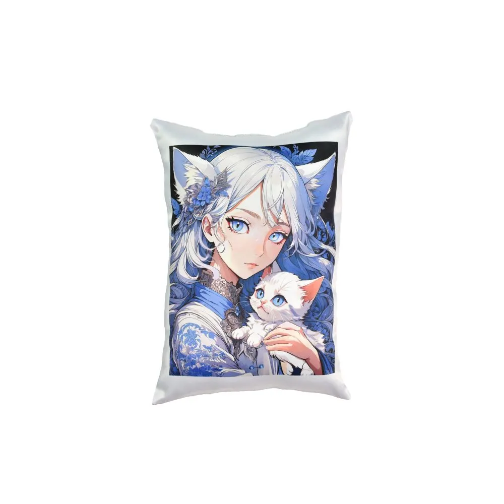Подушка "Аніме дівчина з кошеням" розмір 26*35 см (чорна) з нанесенням сублімації (60672)
