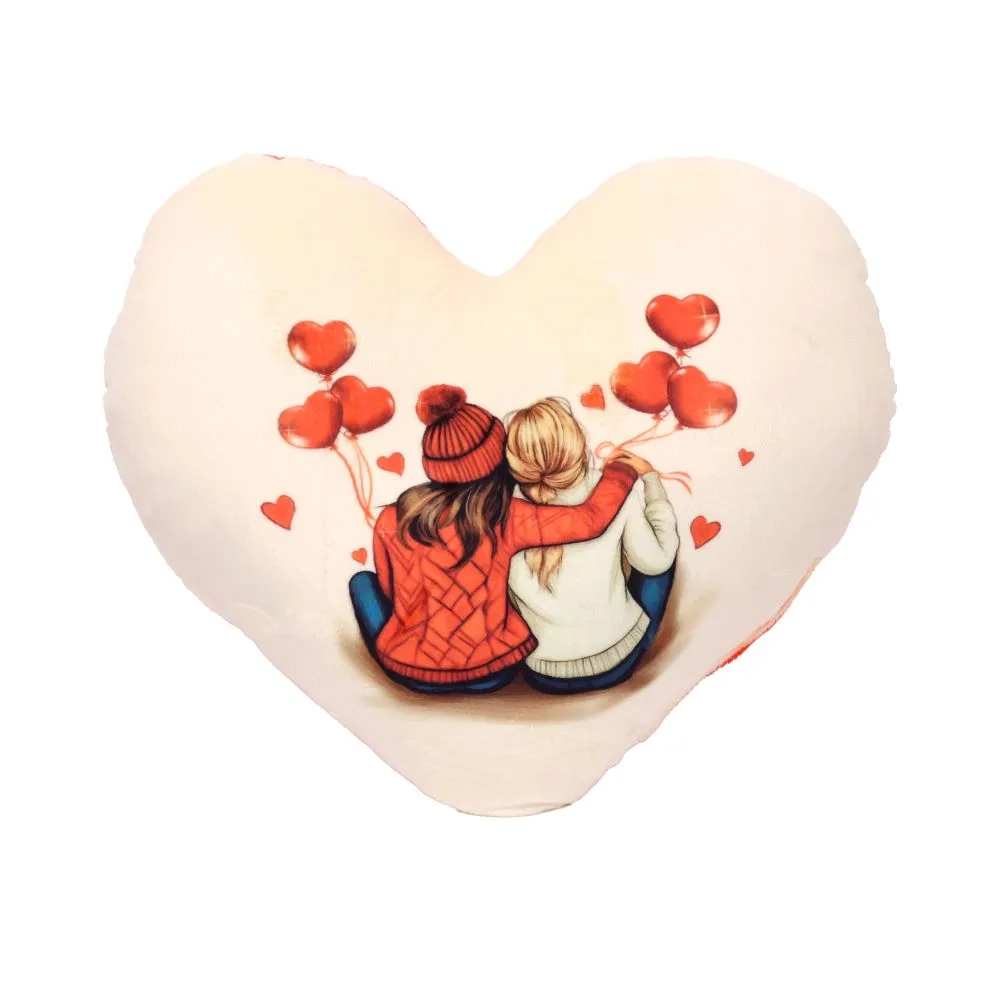 Подушка плюшева Серце "Дівчатка-подружки" розмір 44*40 см червона (60761)