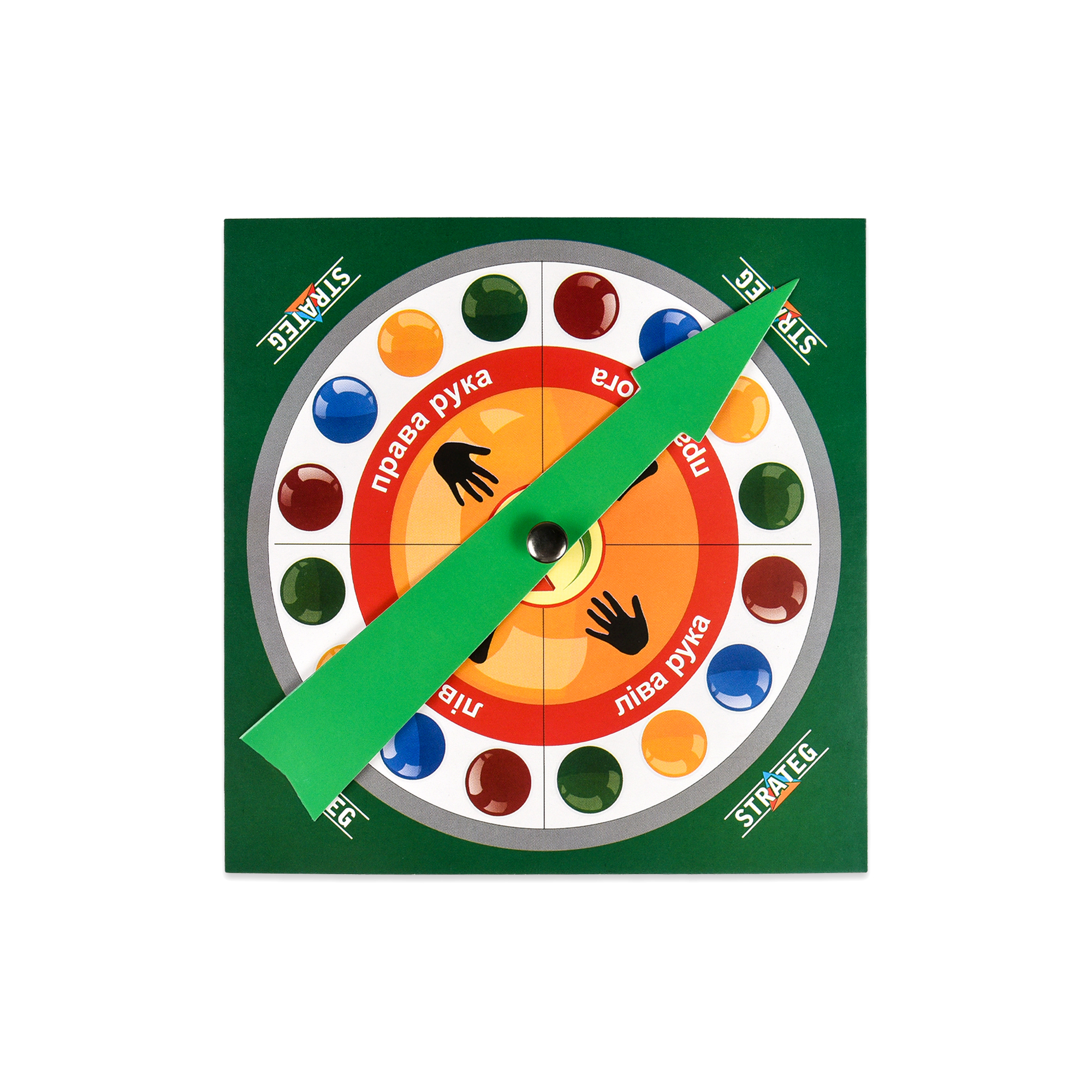 «Твістер» — рухлива гра для компанії, яка дарує сміх і веселощі. Весела гра змусить вас крутитися, тягнутися і сміятися! Гравці мають ставити руки й ноги на кольорові кола, не падаючи й не заплутуючись. Ідеально для активного дозвілля вдома або на природі, для дітей та дорослих. Для дітей від 5 років і дорослих.