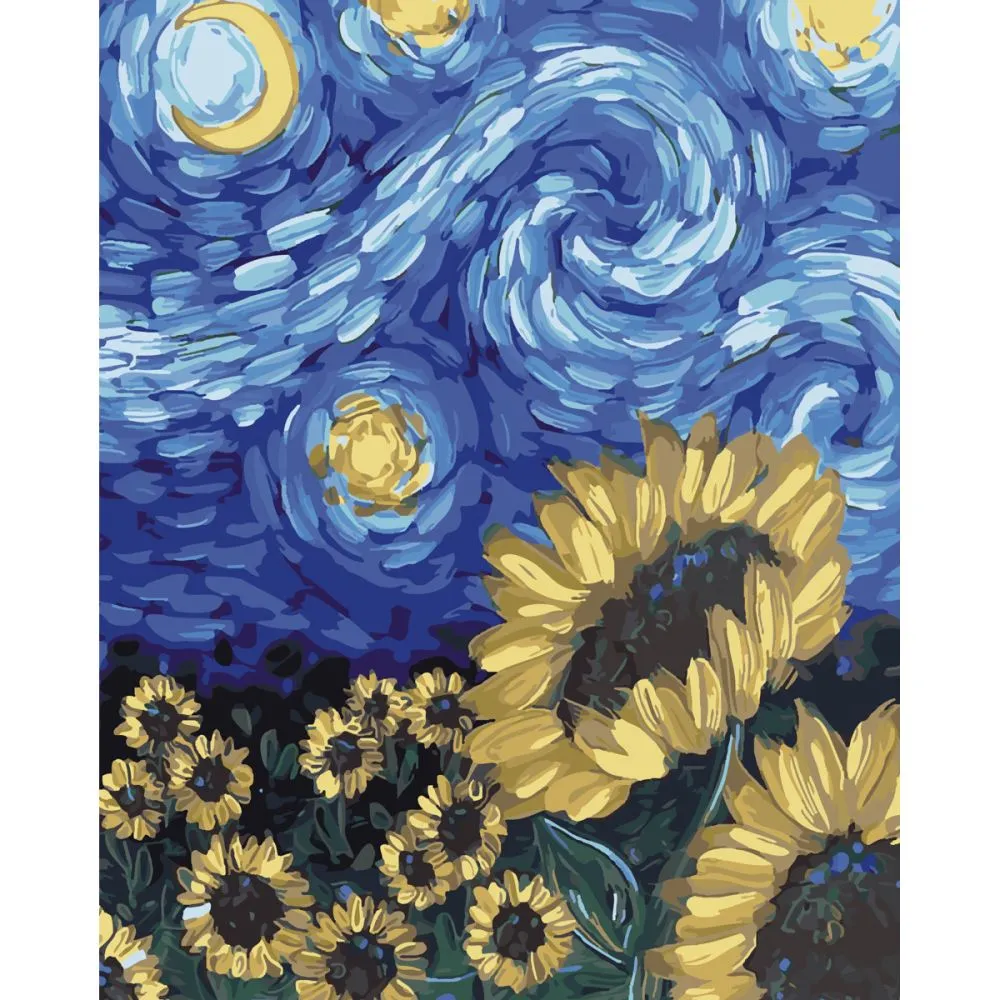 Картина за номерами Strateg Соняшники в стилі Ван Гога з лаком розміром 40х50 см (SY6544)